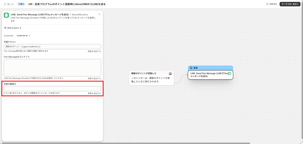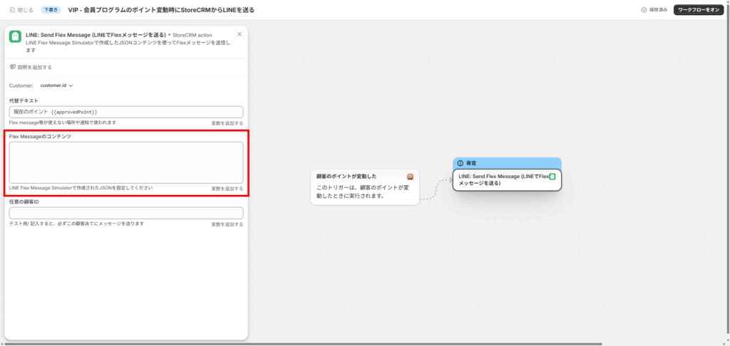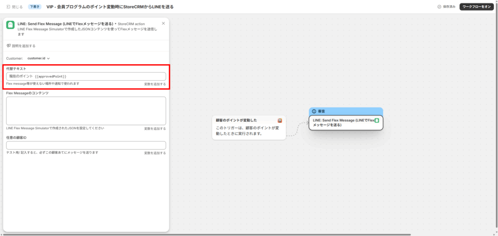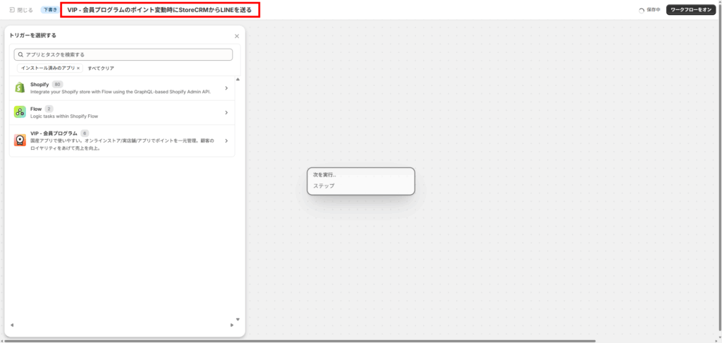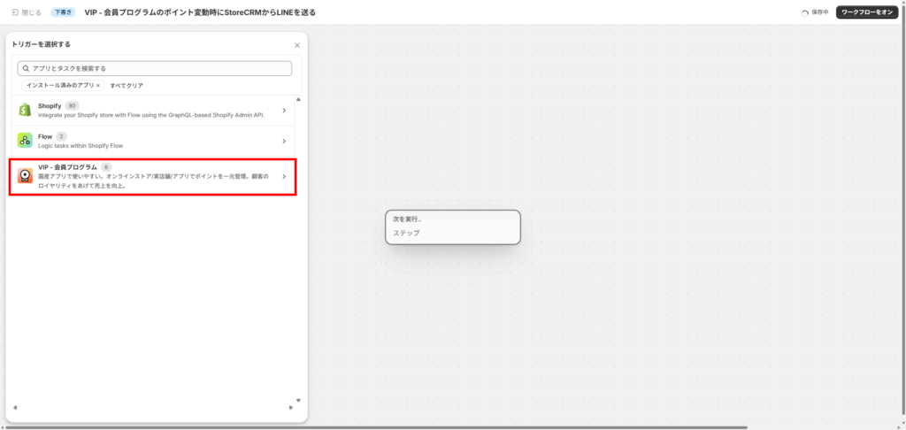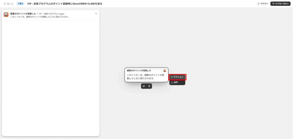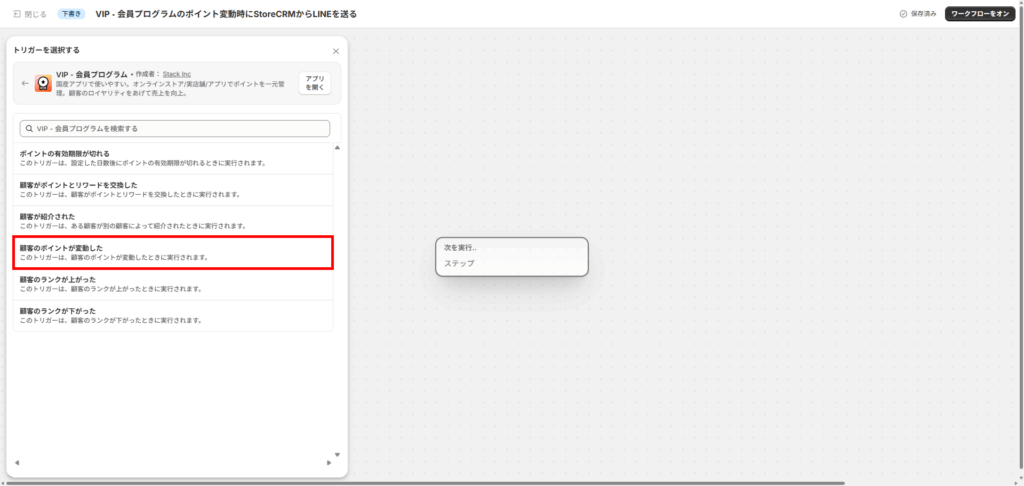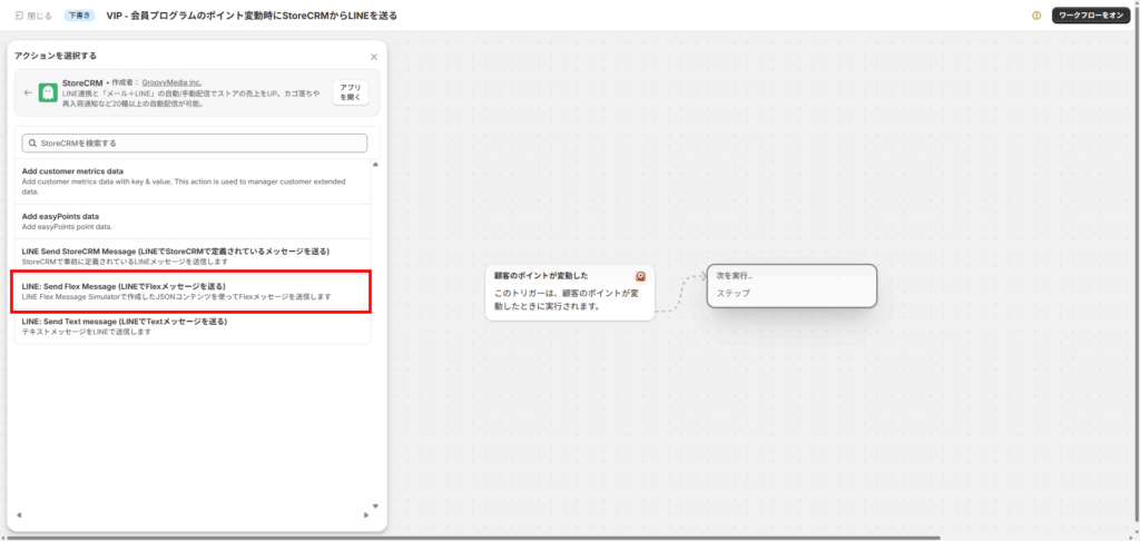 ここでは例として、「VIP ‑ 会員プログラムのポイント変動時にStoreCRMからLINEを送る」に設定しました。