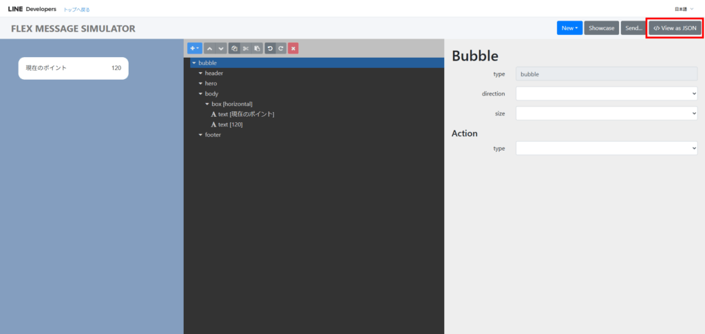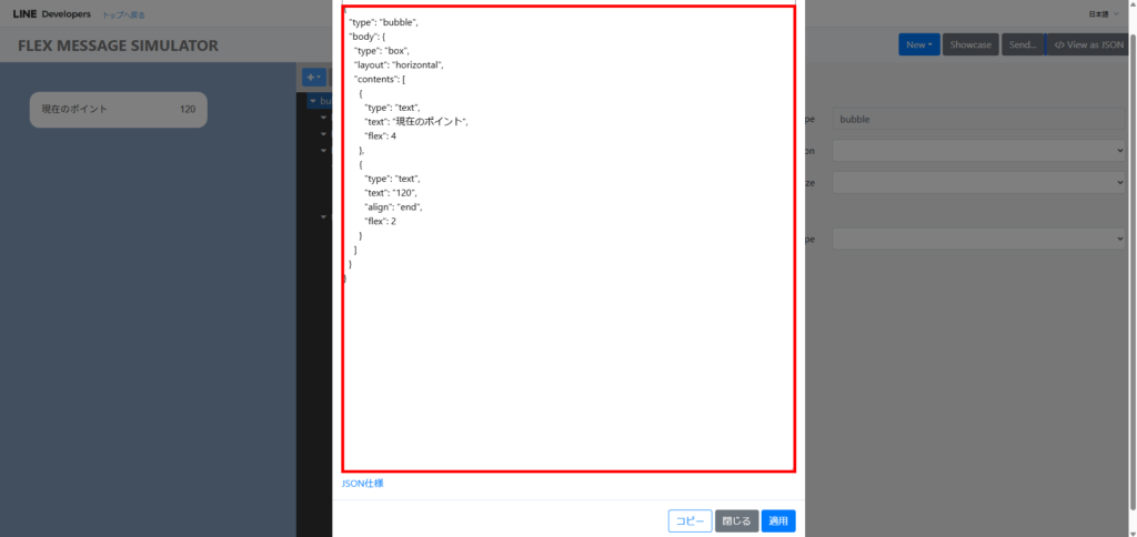 • LINE Flex Messageの作成方法については、こちらをご覧ください。