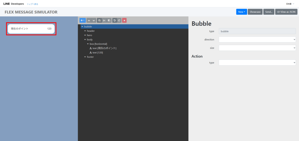 • LINE Flex Messageの送信方法については、こちらをご覧ください。