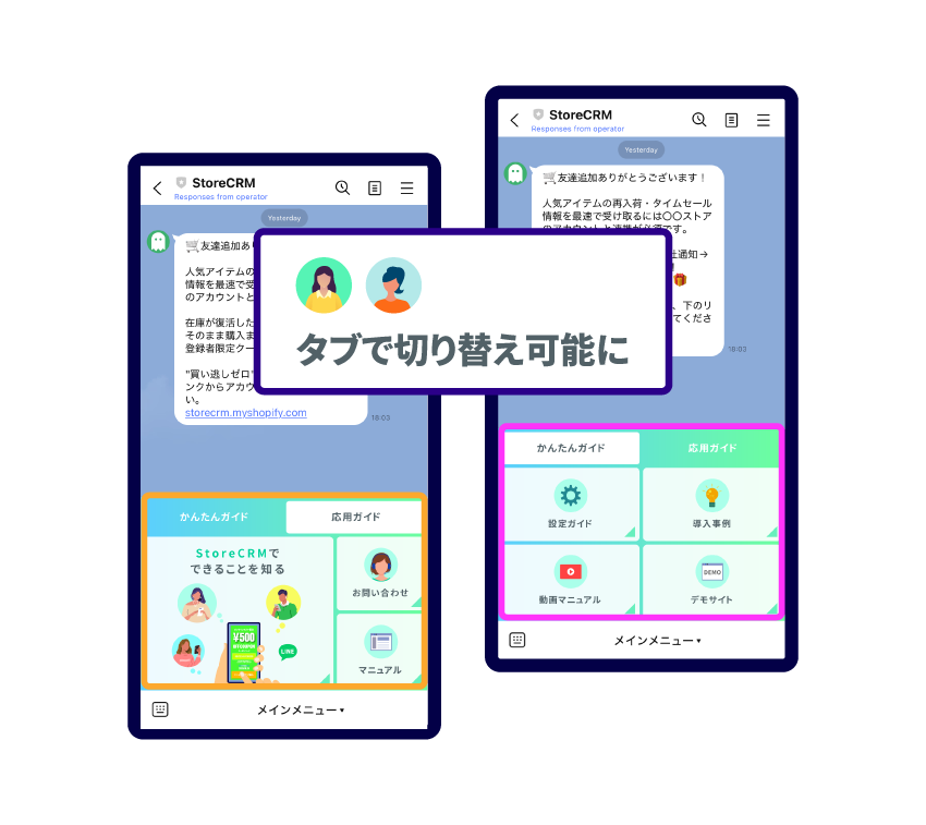 複数のリッチメニューを設置し、お客様側で切り替えてご利用いただけます。